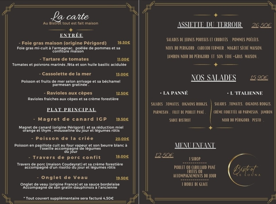 Bistrot Le Louna, located in the charming Les Eyzies, is a culinary gem that celebrates the rich flavors of local ingredients. This bistro perfectly marries delightful cuisine with a warm atmosphere, making it a must-visit for both tourists and locals.